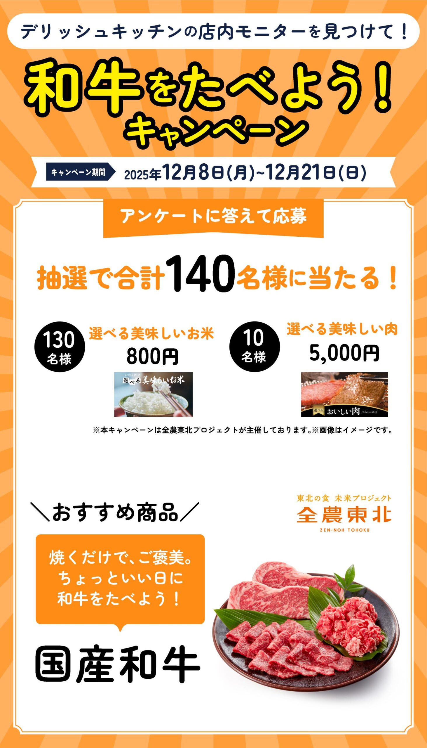 ※キャンペーンの応募はキャンペーン実施店舗に設置されているデリッシュキッチンの店内モニターで流れるキャンペーン応募QRコードよりお申込みいただけます