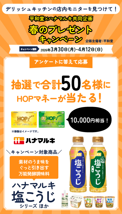 ※キャンペーンの応募はキャンペーン実施店舗に設置されているデリッシュキッチンの店内モニターで流れるキャンペーン応募QRコードよりお申込みいただけます
