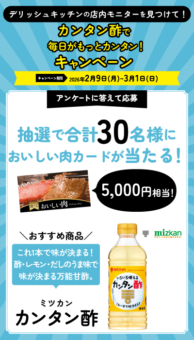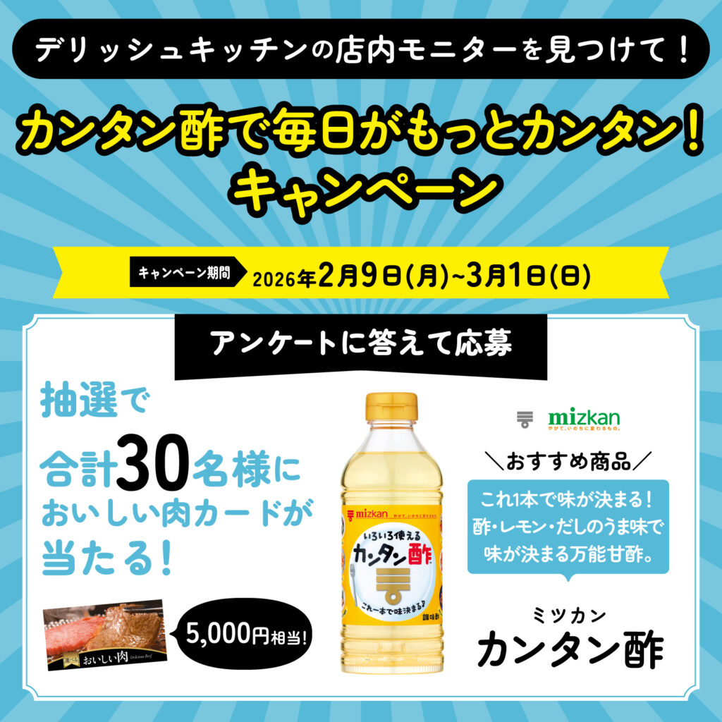 詳しくは以下のご案内、またはデリッシュキッチンの店内モニターで流れるキャンペーンのご案内をご確認ください